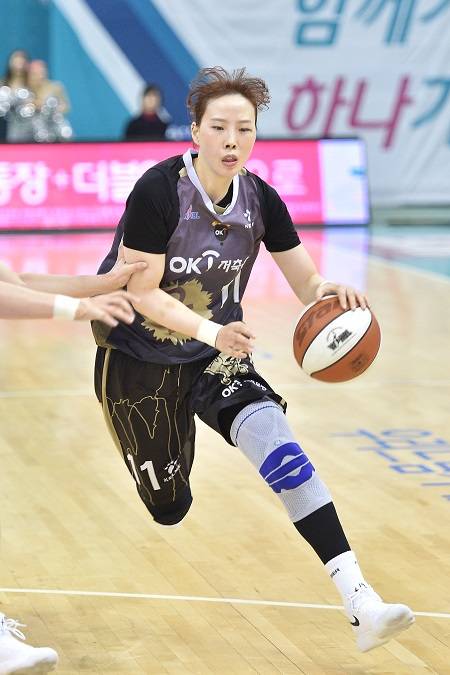 OK저축은행 조은주가 14일 KEB하나은행과의 홈 경기서 9점 2리바운드 2어시스트로 좋은 활약을 했다. 경기종료 1분59초전 한채진의 패스를 좌중간 3점포로 연결, 7점차로 달아나는 한 방을 터트린 게 결정타였다.