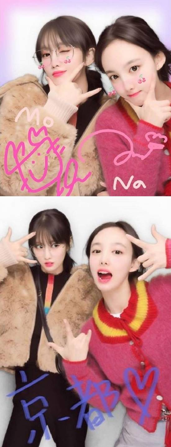 사진 속 모모와 나연은 카메라를 응시하며 다양한 포즈를 취하고 있다.