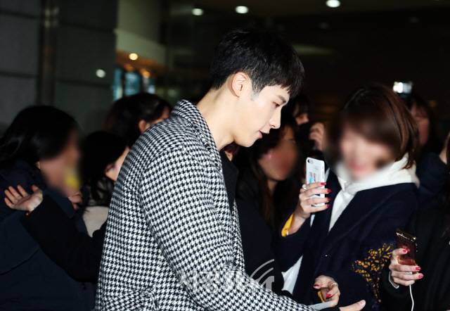 [서울경제] 그룹 B1A4 신우(28)가 19일 오후 서울 영등포구 KBS 별관에서 진행된 KBS2 예능프로그램 ‘해피투게더4’ 녹화에 참석하며 팬들과 인사하고 있다. B1A4 신우는 오는 22일 육군 현역으로 입대한다.