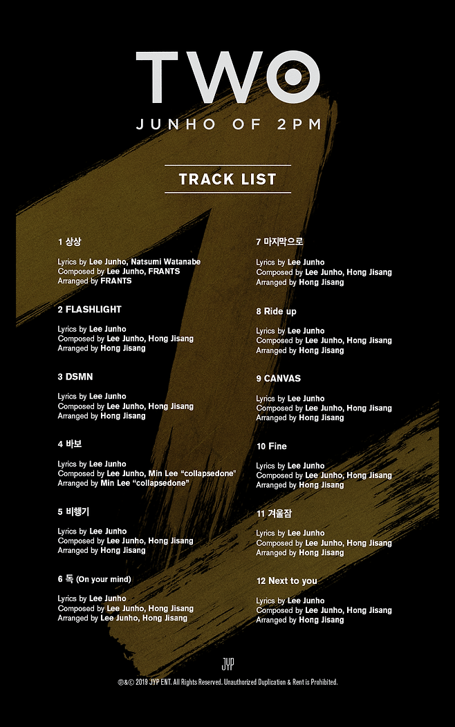 이어 JYP는 20일 0시 JYP 및 준호의 각종 SNS 채널에 준호 베스트 2집 앨범 'TWO'의 트랙리스트가 담긴 이미지를 선보이며 새 앨범에 대한 기대감을 증폭시켰다.