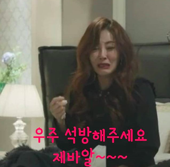 사진은 JTBC 금토드라마 'SKY 캐슬'에서 오나라가 울고 있는 모습을 캡처한 것으로 '우리 우주 석방해주세요. 제바알~'이라는 문구가 적혀있다.
