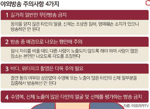 개인방송 플랫폼인 아프리카TV 측도 지난해 7월 ‘야외방송 주의사항’을 BJ들에게 안내했다.