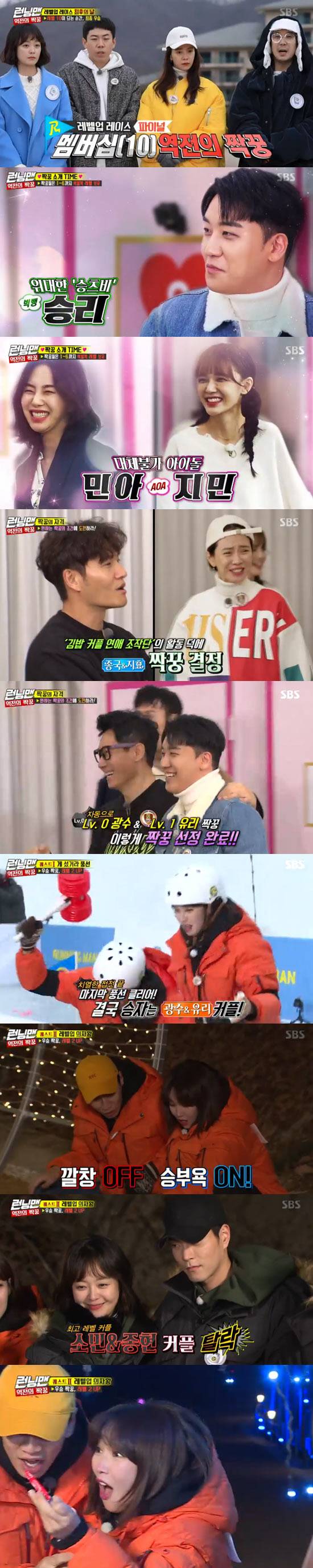 결국 우여곡절 끝에 유재석 정유미, 이유리 이광수, 전소민 홍종현, 승리 지석진, 김종국 송지효, 하하 민아, 양세찬 지민이 짝꿍 미션을 펼쳤다.