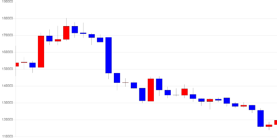 01월 31일 09시 41분 현재 암호화폐 거래소 코인원에 따르면 이더리움은 전일 대비 5,800원 (5.01%) 오른 121,600원에 거래되고 있다.