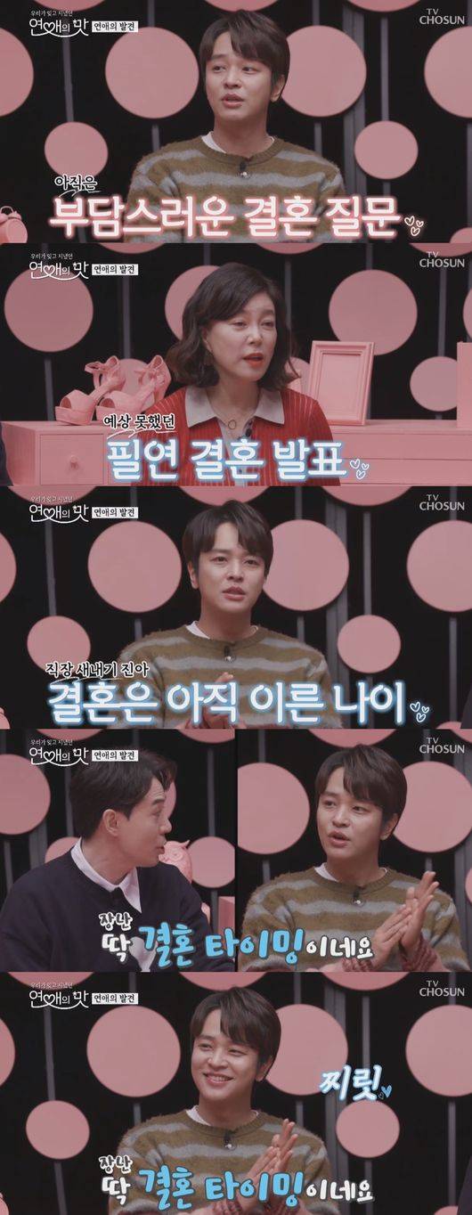 이후 그는 이필모, 서수연 커플의 결혼 과정을 지켜보며 "이중 질문의 오류라고 하잖나. '너희는 결혼을 할 것이다' '그 결혼은 언제 하냐'라는 질문을 섞어서 '결혼 언제 할 거냐'고 묻는다. 결혼한다고 말한 적이 없다. 그게 가장 부담스럽다"고 심경을 털어놨다.
