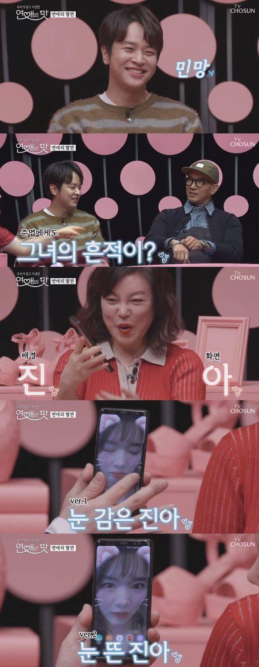 이어 MC들은 이들에게 남아 있는 '연애의 맛' 흔적들을 살펴봤고, 그들의 휴대전화에 저장돼 있는 상대방 문구에 대해 물었다. 이에 고주원은 '보미씨', 구준엽은 '오지혜'로 답했으며, 김정훈은 '하나뿐인 진아'라고 말해 MC 및 패널들의 환호성을 이끌어냈다.