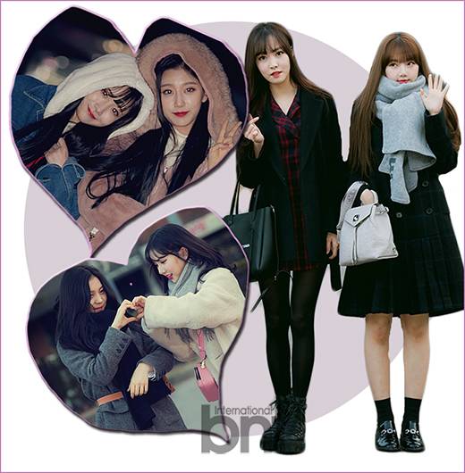 추운 겨울, 친구와 우정을 과시할 수 있는 트윈룩을 연출하고 싶다면 주목. 많은 아이돌 스타들이 음악방송 출근길에 다양한 트윈룩을 선보였다. 특히 같은 옷이 아닌 같은 컬러 톤, 재질 혹은 포인트 아이템으로 매치해 더욱 세련된 무드를 자아냈다.