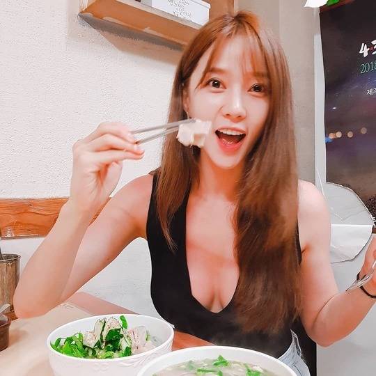 사진에는 민소매를 입고 식당을 찾은 레이양의 모습이 담겨있다.