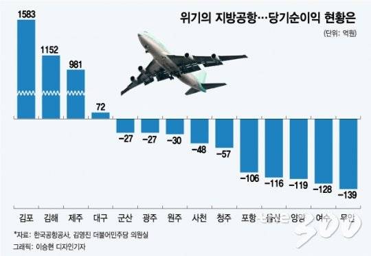 14곳 가운데 흑자를 내는 곳은 △김포 △김해 △제주 △대구공항 뿐이다. 그나마 대구공항도 2016년에야 처음 흑자로 전환했다.