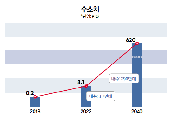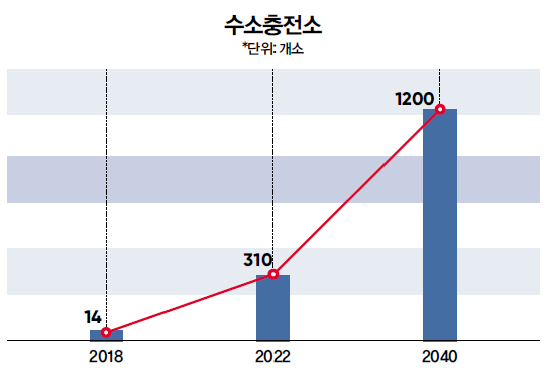 정부는 우리나라가 강점을 가진 ‘수소차’와 ‘연료전지’를 양대 축으로 수소경제를 리드할 수 있는 생태계를 구축하겠다고 밝혔다. 이를 위해 수소차 생산량을 2018년 2000대에서 2040년 620만 대로 확대하겠다는 계획을 밝혔다. 그리고 수소차 보급 확산의 핵심 인프라인 수소충전소의 경우도 2018년 기준 14개에서 2022년 310개, 2040년 1200개소를 구축하겠다고 밝혔다. 에너지 분야의 경우 발전용 연료전지는 2040년까지 발전용 연료전지는 15GW(내수 8GW), 가정 건물용 연료전지는 2.1GW(94만 가구) 보급을 목표로 하고 있다.