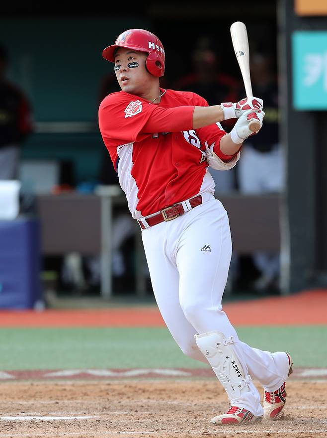 사실 처음 4번에 배정되고 한두 경기는 부담스러웠어요. 다른 팀 4번 타자들처럼 40홈런을 치는 선수가 아니니까요. 대신 ‘내가 할 수 있는 다른 게 뭐가 있을까’라고 고민한 끝에 뒤로 연결해주는 역할을 해야겠다고 생각했어요. 타점을 많이 올릴 기회에서는 무조건 해결해야 한다는 마음으로 임했고요. 방법을 찾은 뒤에는 부담이 사라졌어요.