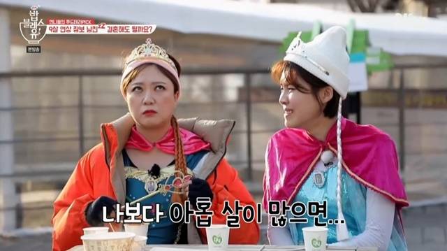 스키장에서 안나와 엘사 분장을 한 김숙과 장도연은 시청자의 고민에 속 시원한 사이다 해결방안을 제시했다. (사진=Olive ‘밥블레스유’ 캡처)