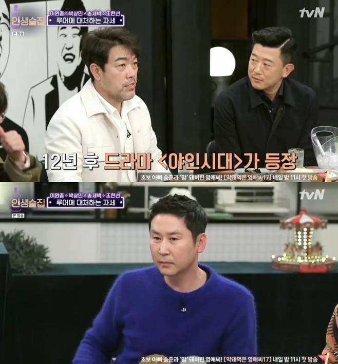 7일 밤 방송된 tvN 예능프로그램 '인생술집'에서는 배우 박상민 이원종 송새벽 조한선이 게스트로 출연해 다양한 이야기를 나눴다.