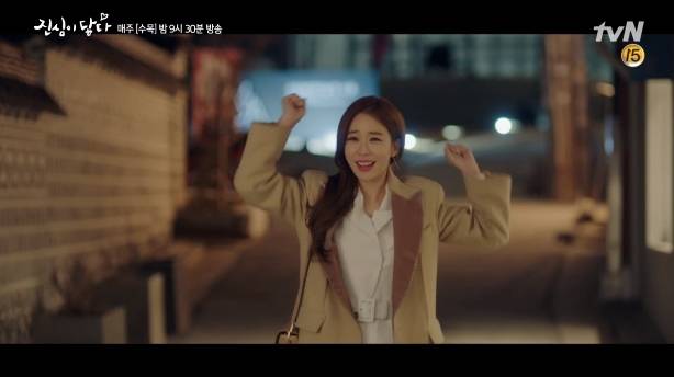 오진심은 "감사하다. 변호사님. 진짜 열심히 할 거다"고 말한 후 권정록에게 다가가다 발을 삐끗, 권정록에게 안기고 말았다.