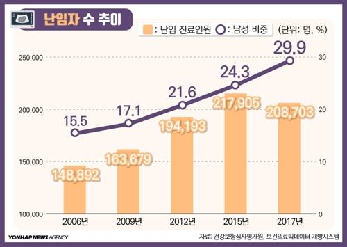 국민건강보험공단에 따르면 불임 환자 역시 2008년 16만2천명에서 2012년 19만1천명으로 연평균 4.2% 증가했다.