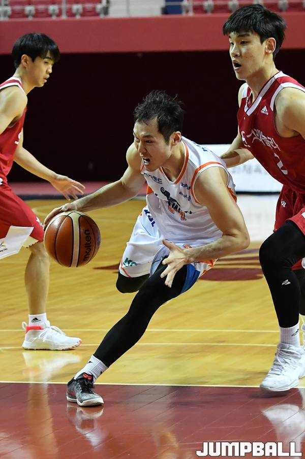 [점프볼=수원/홍기웅 기자] 11일 경희대학교 국제캠퍼스 선승관에서 열린 '2018-2019 KBL D-리그 2차 대회' 오리온과 전자랜드의 경기. 전자랜드 박성진이 낮은 자세로 드리블 돌파를 하고 있다. 2019-02-11 홍기웅(woong_sport@naver.com)