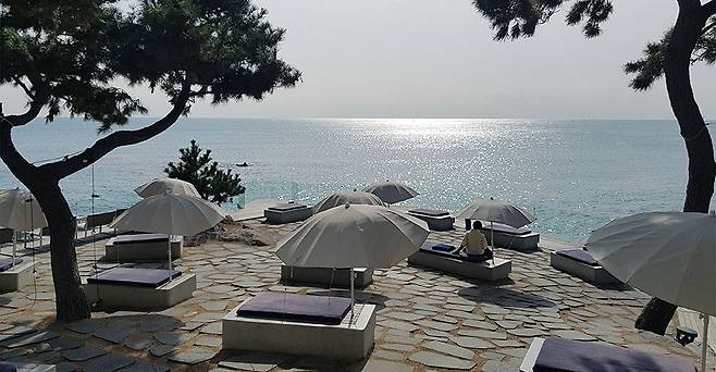 야외 평상도 '명당'이다. 웨이브온의 바다 쪽 마당에는 어른 두 사람이 누울 정도 크기의 널찍한 대청마루가 여러 개 마련돼 있다. 절벽, 해송과 어우러진 바다를 한눈에 담을 수 있다. 곽 소장은 "한국 전통 옥외 가구인 평상을 현대적으로 재현한 것"이라며 "기장의 아름다운 절벽을 제대로 느낄 수 있는 장치"라고 했다.