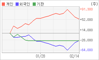 | 외국인과 기관은 순매도, 개인은 순매수(한달누적) 전일 기관이 주를 순매수했다. 4주간을 기준으로 보면 외국인이 매도 후 매수의 관점을 보이고 있음에도 불구하고 27,109주를 순매도했고, 기관도 매도 이후에 다시 순매수로 돌아서지 않으면서 27,247주를 순매도했지만, 개인은 오히려 매기를 떨어뜨리면서도 54,356주를 순매수했다. |