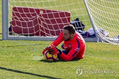 epa07372111 Atletico de Madrid's goalkeeper Jan Oblak attends a team's training session at Wanda sports city in Majadahonda, Madrid, Spain, 15 February 2019. Atletico de Madrid is facing Rayo Vallecano in a Spanish Primera Division LaLiga soccer match on 16 February 2019. EPA/Rodrigo Jimenez