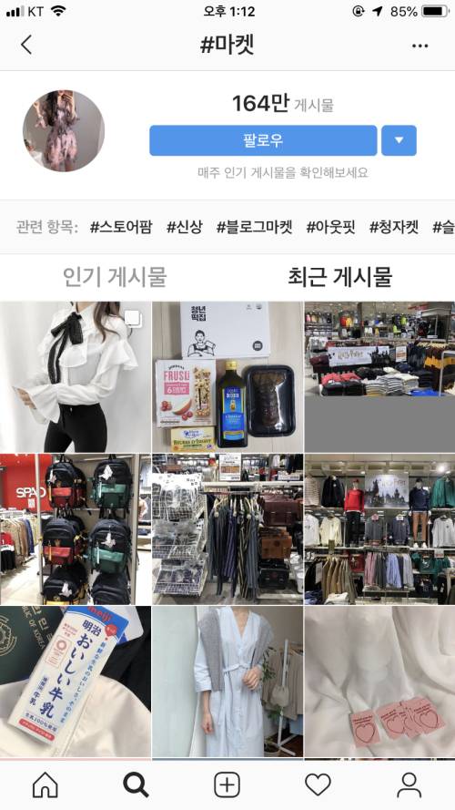 | 15일 현재 인스타그램에서 ‘#마켓’으로 검색하면 164만건에 달하는 연관 게시물이 올라와 있다. 인스타그램 캡처 |