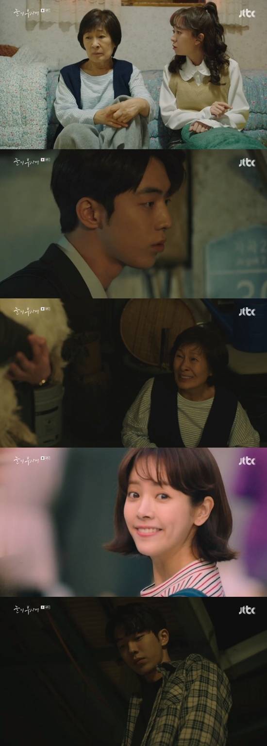 19일 방송된 JTBC '눈이 부시게'에서는 김혜자(김혜자 분)가 이준하(남주혁)과 강아지를 두고 티격태격하며 인연을 맺는 모습이 그려졌다.