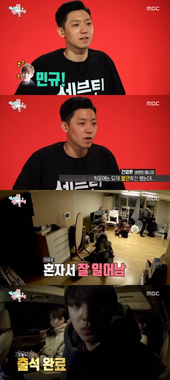 이후 민규는 제 시간에 맞춰 차에 탔고, 세븐틴 매니저는 "처음에는 불안하긴 했는데 스스로 일어나서 제 시간 맞춰서 나온다. 어디선가 나타난다"라며 설명했다.