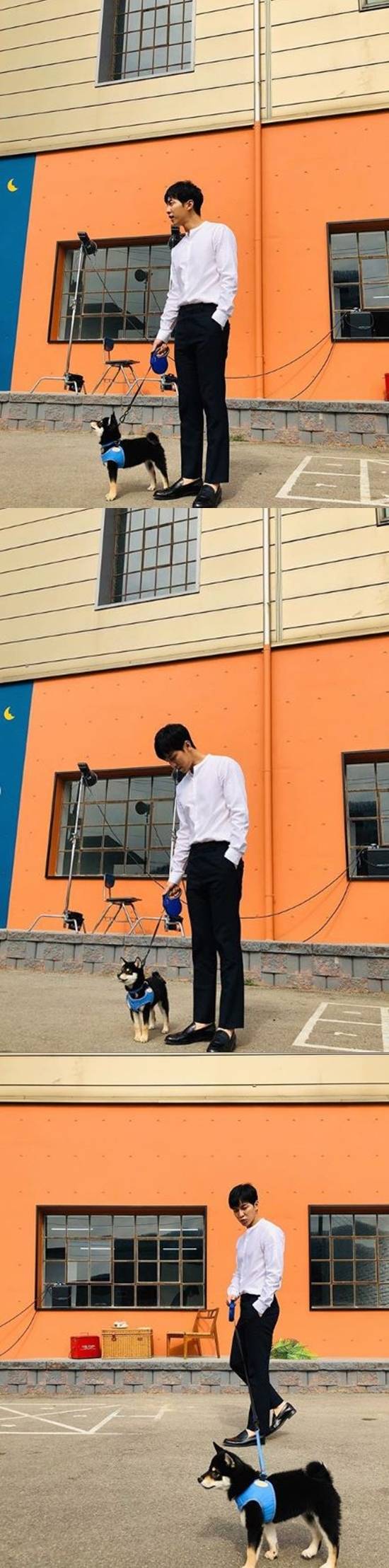 게재된 사진 속 이승기는 반려견과 함께 길을 걷고 있다. 이승기는 흰색 셔츠에 검은색 바지와 로퍼를 착용해 깔끔한 패션을 선보였다. 특히 이승기는 작은 얼굴과 큰 키로 독보적인 비율을 자랑했다.