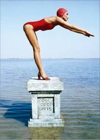 붉은 수영복 차림의 여성이 하이힐을 신은 채 해변의 구조물 위에서 다이빙 자세를 취하고 있다. 20세기를 대표하는 사진가 노먼 파킨슨(1913~1990)의 작품으로, 1975년 패션잡지 보그지의 표지에 게재됐던 사진이다. 모델이 딛고 있는 물체의 표면엔 ‘소비에트연방 1975’라는 뜻의 글이 새겨져 있다. 파킨슨은 이 사진을 옛 소련에서 촬영했고, 그것을 표현하기 위해 이 기념비를 만들어 가져갔다. 패션사진이면서도 당시의 냉전체제를 넘어서려는 시도였다.