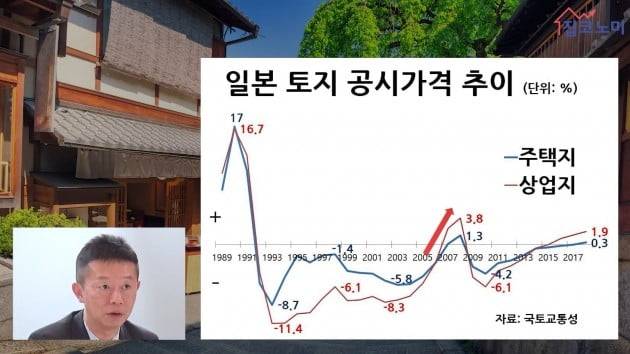 지금 말씀하셨던 ‘잃어버린 20년’이라는 말은 어느 면에서 보면 사실입니다. 일본에는 약 30년 전에 버블시대란 게 있었습니다. 부동산 가격이 엄청나게 올라가는 시기가 있었습니다. 근데 그건 1991년에 끝나고 그 이후 계속해서 떨어졌습니다. 2004년부터인가? 그 아베노믹스 전에 고이즈미 전 총리 때 ‘고이즈미 버블’이라는 게 있었어요. 펀드 버블이라는 말도 있는데. 고이즈미 총리 시절인 2005~2006년 그때 굉장히 올라갔어요. 그런데 2008년에 리먼 쇼크가 왔죠. 다시 한 번 내려가서 그 이후 정치가 민주당 정권으로 바뀌고 도호쿠 대지진이 있었잖아요. 그때 좀 안 좋았는데. 2012년부터인가? 아베노믹스가 시작돼서 그 이후는 계속해서 (부동산 시장이) 올라가고 있습니다.