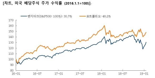 이는 미국 내 배당상위 종목과 최근 3년간 미국 배당상위 종목과 S&P500 지수를 비교해봐도 알 수 있다. 최근 3년간 미국 배당상위 종목의 투자수익률은 48.2%로, 같은 기간 S&P500 지수 상승률(30.7%)을 크게 앞선 것으로 나타났다.