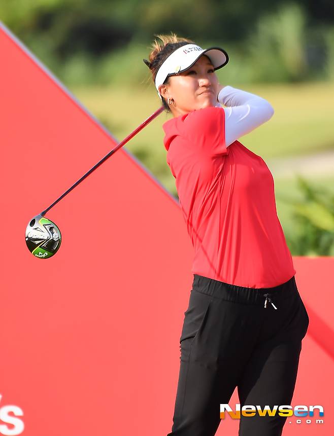 이날 3라운드가 열려 애니박이 10번홀에서 티샷을 구사하고 있다.
