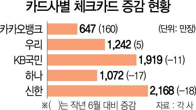 그러나 예상과 달리 카카오뱅크가 신용카드에 버금가는 혜택을 주며 체크카드 시장을 크게 늘려 가자 카드사들이 당황하고 있는 것이다.