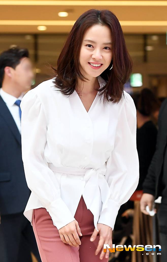 이날 송지효가 포즈를 취하고 있다.