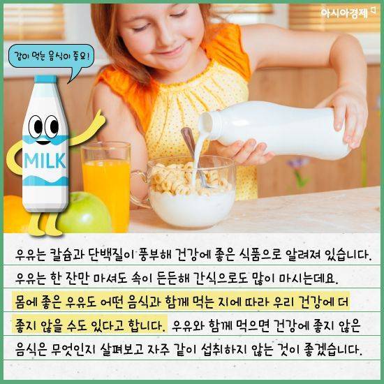 [카드뉴스]건강의 상징 '우유', 음식 잘못 만나면 'ㅠㅠ'