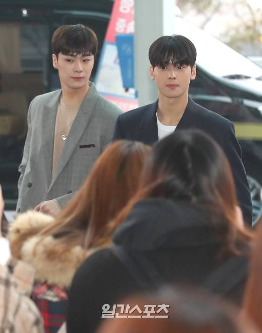 [포토]문빈-차은우, '많은 팬들에 놀란 표정'