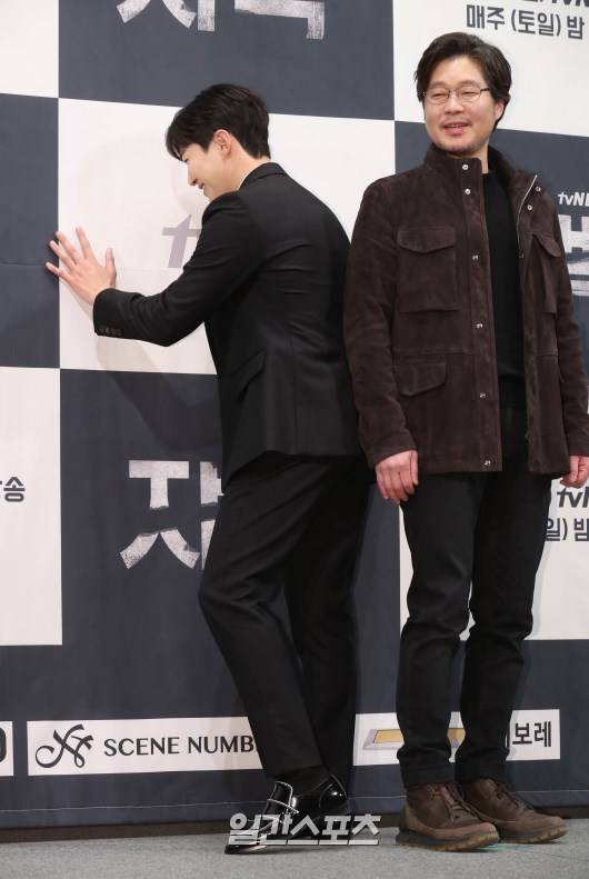 배우 이준호와 유재명이 15일 서울 강남구 청담동 임피리얼 팰리스 셀레나홀에서 열린 tvN 새 토일 드라마 ‘자백’ 제작발표회에 참석해 포토타임을 갖고 있다.