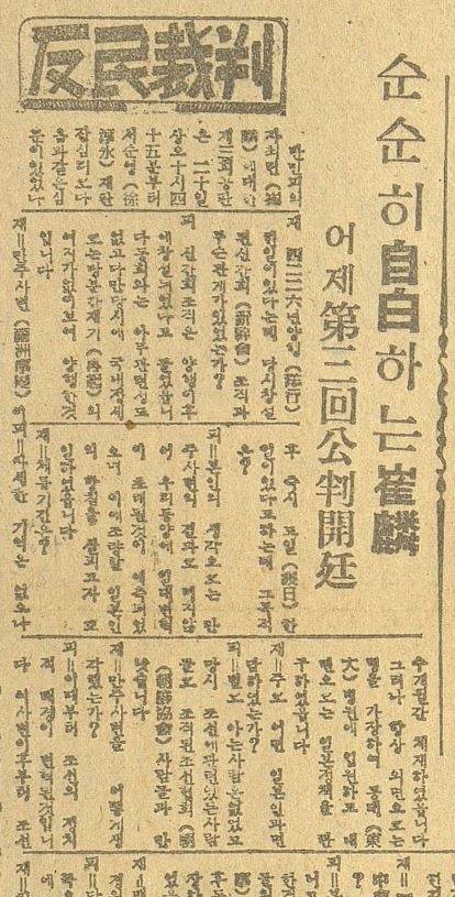| ▲ 반민특위의 최린 재판 보도(연합신문, 1949.4.21.) (연합신문) |