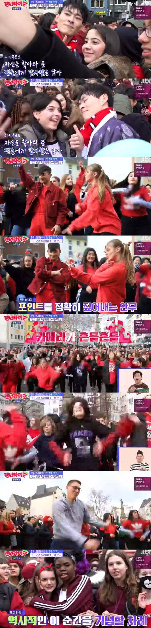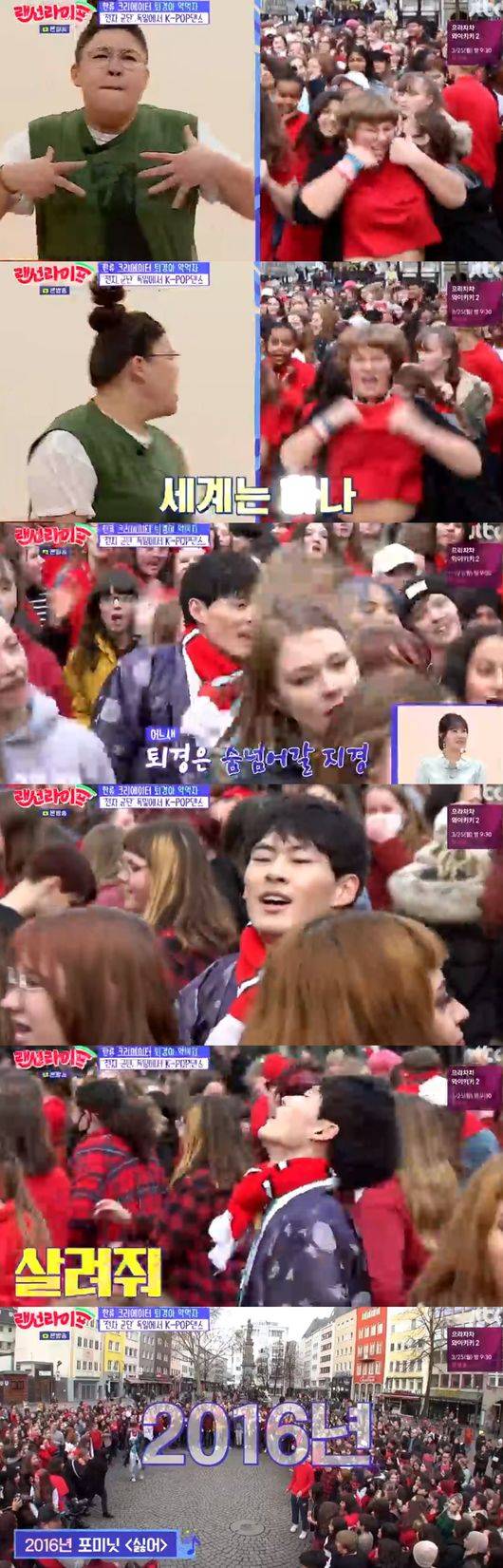 MC 유세윤은 “내가 초등학교 6학년 때 나온 노래다. 이건 진짜 모를 것 같다”고 전했다. 함께 지켜보던 스튜디오 출연진은 독일 사람들이 이 곡을 알고 댄스에 참여할 수 있을지 긴장감을 감추지 못했다.