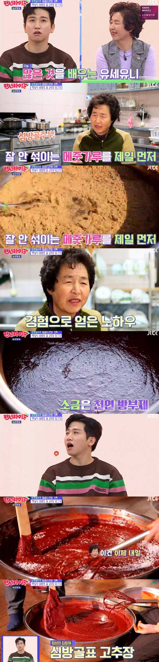 심방골 주부는 "매년 3월 고추장을 담그고 있다"며 무려 일주일에 달하는 정성스러운 과정을 공개했다. 첫 번째 날은 고추장에 들어갈 엿물 만들기에 나섰다. 찹쌀가루와 엿기름을 삭히기 위해 장작불에 5시간여를 끓이는 정성으로 모두를 놀라게 했다. 엿물 하나 만드는 데에만 만 하루가 꼬박 걸렸다.