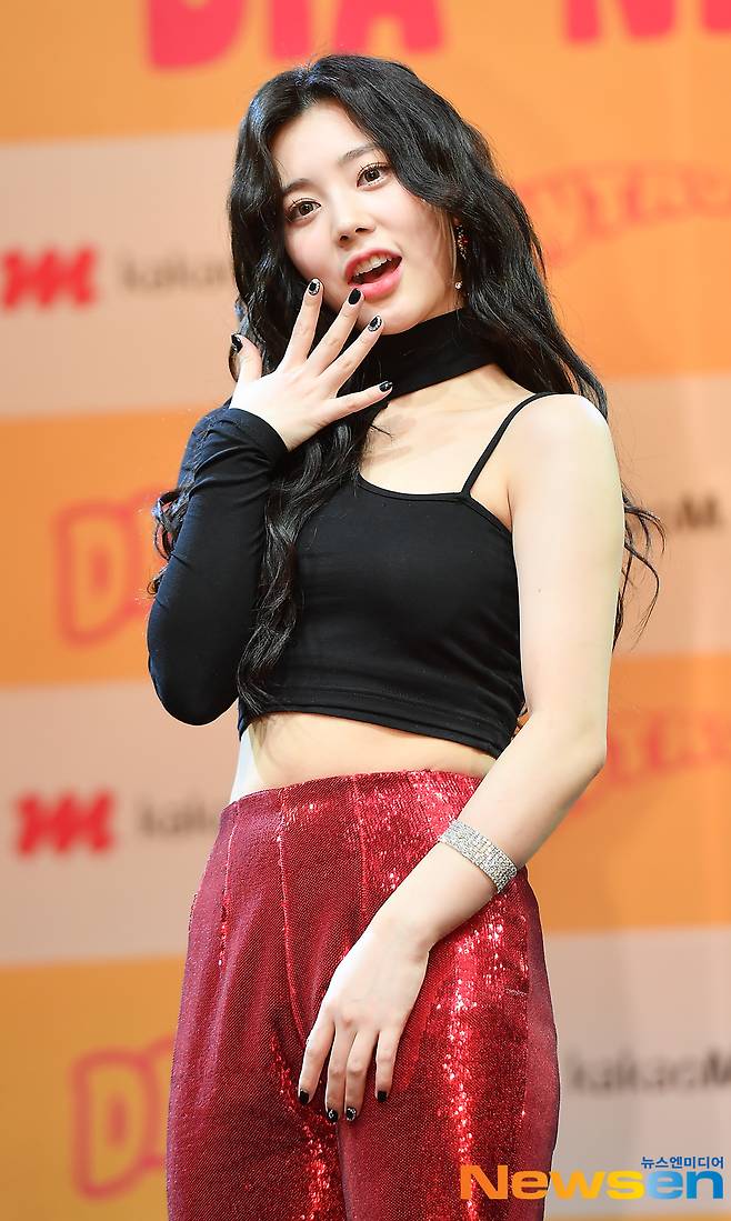 이날 다이아 은채가 포토 포즈에 응하고 있다.