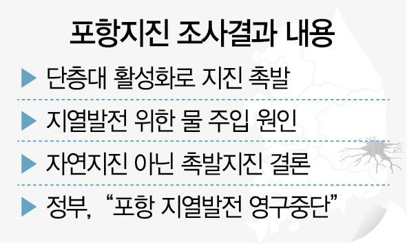 포항 지열발전소는 2012년 정부가 신재생에너지 확대 정책의 일환으로 추진한 프로젝트다. 과거 이명박 정권에서 시작했지만 신재생에너지 육성에 드라이브를 걸고 있는 현 정부로서도 이번 결과가 향후 에너지 정책 추진에 차질을 가져올 수 있다는 전망이 나온다.