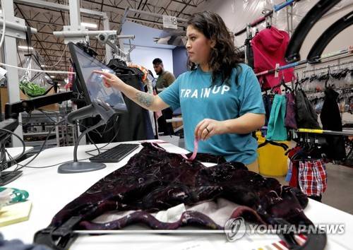 In this Tuesday, March 12, 2019, photo Jasmine Valladares enters measurements as she itemizes clothing at the ThredUp sorting facility in Phoenix. Charitable organizations like Goodwill have cited how Marie Kondo’s popular Netflix series, “Tidying up with Marie Kondo” has led to a surge of donations. And sites like OfferUp and thredUP also note an uptick in the number of items being sent to them for sale. (AP Photo/Matt York)