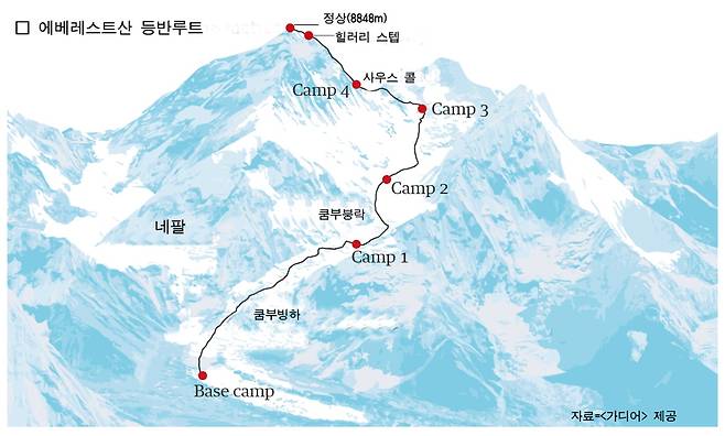 네팔산악회 전 회장인 앙 세링 셰르파는 25일 <비비시>(BBC)와 인터뷰에서 “지구 온난화 때문에 빙하가 빠른 속도로 녹아내려 묻혀 있던 주검들이 드러나고 있다. 최근에 숨진 몇몇 산악인들의 주검을 운반해왔는데 이제는 좀더 오래 전에 묻힌 주검들도 나오고 있다”고 말했다. 에베레스트산 정상 인근에서는 1922년 첫번째 등정이 시도된 이래 300명 가까운 산악인이 숨졌으며 이 가운데 200여명의 주검은 아직까지 눈과 얼음에 묻혀 있다. 세계에서 가장 높은 에베레스트산은 1953년 에드먼드 힐러리와 텐징 노르가이가 최초로 정상을 밟은 이래 4800명 이상의 산악인이 정상에 올랐다.