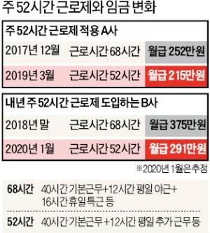 한 생산직 근로자는 “주 52시간 근로제 적용 탓에 평균 300만원 이상이었던 월수입이 200만원대로 줄어 매달 적자다. 적자를 메우기 위해 아르바이트를 구하고 있는데 쉽지 않아 날마다 돈 걱정”이라며 “서민적이지 못한 정책”이라고 말했다. 또 다른 생산직 근로자도 “줄어든 월급을 충당하느라 더 힘들게 일하고 있다”며 “도대체 누구를 위한 제도인가”라고 반문했다.