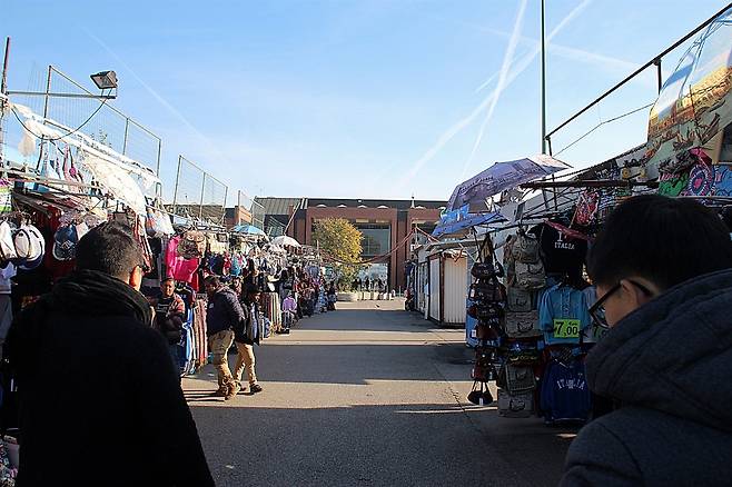 바다가 보이는 것으로 보아 베네치아가 가까워졌나 보다. 버스는 베네치아 트론체토(Tronchetto) 선착장이 보이는 주차장에 도착을 했다. 선착장 가는 길 양쪽으로 남미계 사람들이 천막을 치고 기념품 가게를 운영하고 있었는데 조금 지저분해 보였다. 아름다운 물의 도시라고 잔뜩 기대를 하고 왔는데 선착장부터 잡상인들이 몰려와서 기분이 별로 좋지 않았다.