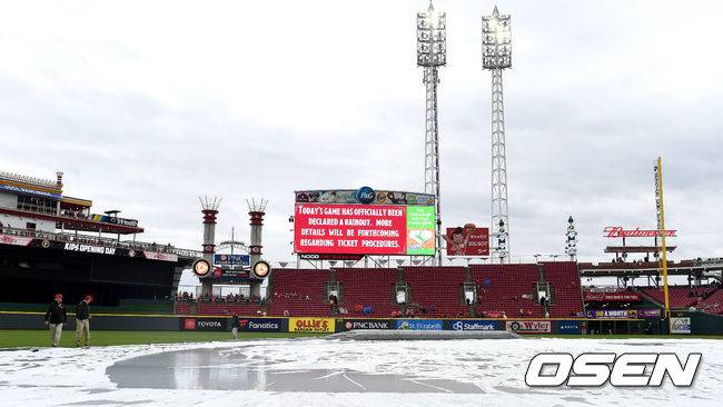 전날 밤부터 신시내티 지역에 비가 내렸고, 그레이트아메리칸볼파크는 일찌감치 대형 방수포를 깔았다.