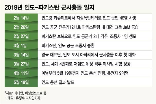 #앙숙인 인도와 파키스탄은 지난 2월부터 카슈미르 관련 분쟁으로 갈등을 겪고 있다. 테러에 대한 응수라고 했지만 인도 공군은 전투기 12대로 1톤이 넘는 폭탄을 투하했다. 인도 공군이 국경을 넘어 파키스탄을 공습한 건 48년 만이었다.