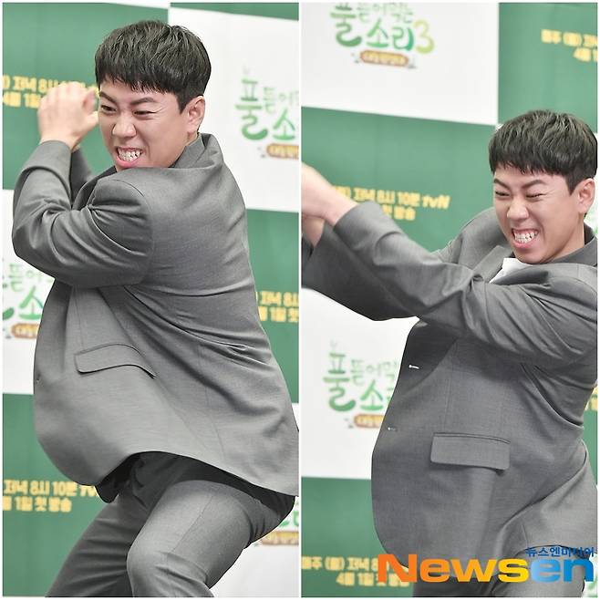 개그맨 양세찬이 4월 1일 오후 서울 마포구 스탠포드호텔에서 열린 tvN '풀 뜯어먹는 소리3 - 대농원정대' 제작발표회에 참석해 포토타임을 가지고 있다.