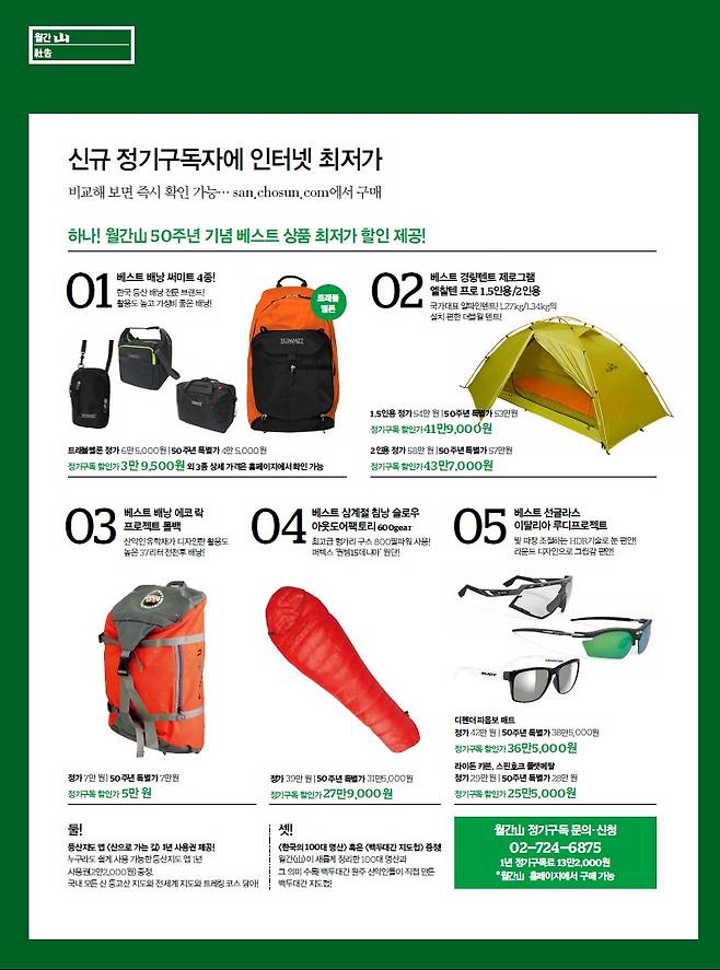 월간<山> 창간 50주년 기념 '인터넷 최저가' 등산용품 기획전