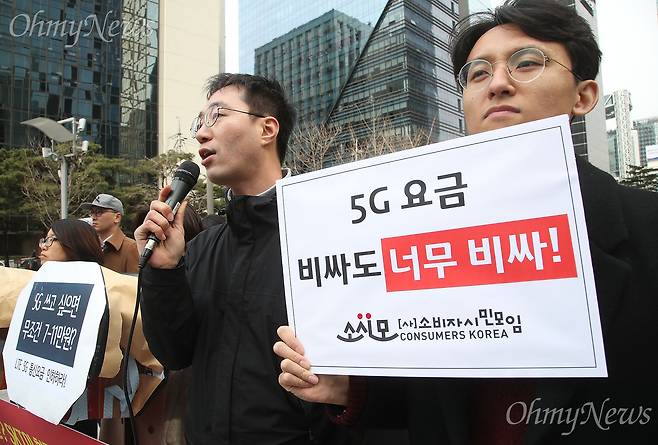 김주호 참여연대 민생팀장은 "이통사들이 내놓은 5G 요금제는 3~4만원대 저가요금제 이용자들은 아예 가입조차 할 수 없고, 단말기 할부금 포함 월 10만원 넘게 부담할 수 있는 이용자들에게만 허용되는 부익부빈익빈 요금제"라며 "5만5000원짜리 최저요금제는 이용자 입장에서는 있으나마나"라고 지적했다.